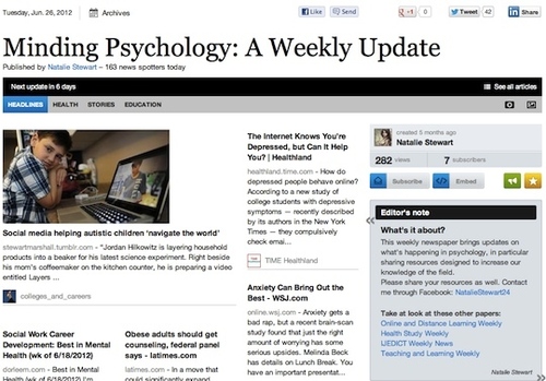 This weekly newspaper brings updates on what’s happening in psychology, in particular sharing resources designed to increase our knowledge of the field.