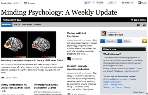 This weekly newspaper brings updates on what’s happening in psychology, in particular sharing resources designed to increase our knowledge of the field.