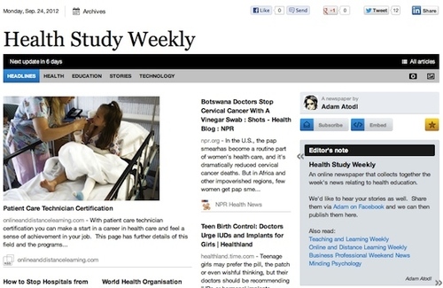 An online newspaper that collects together the week’s news relating to health education.